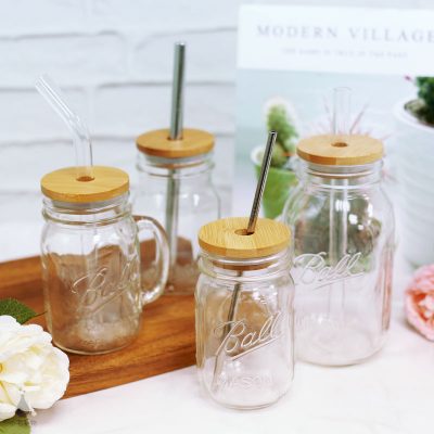 美國 Ball 梅森罐 天然竹杯蓋飲料杯組 (寬口) 送原廠馬口鐵環蓋