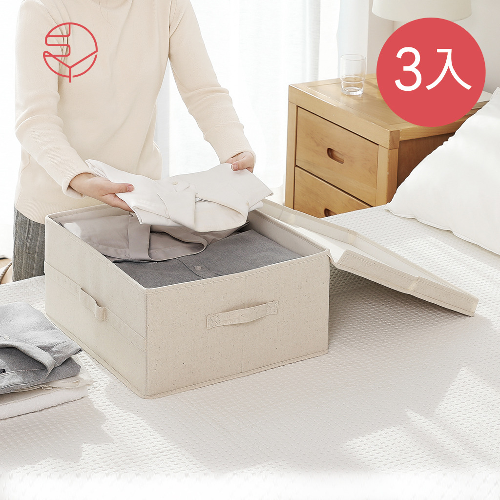 日本霜山 亞麻風可折疊衣物收納箱 (附蓋) 3入
