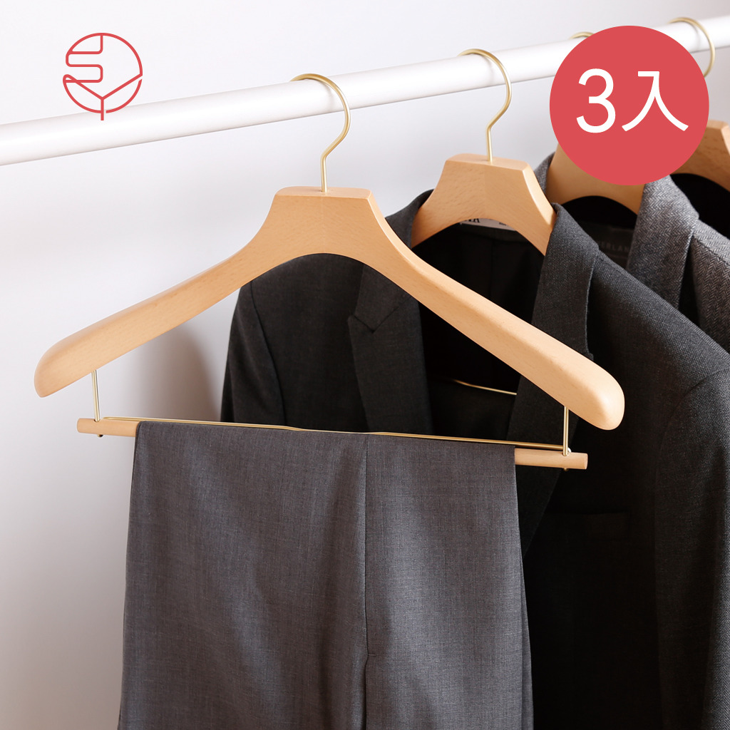 - 內 容 物:日本霜山 SHIMOYAMA 天然木製兩用褲掛衣架 (男用西裝款) 3入