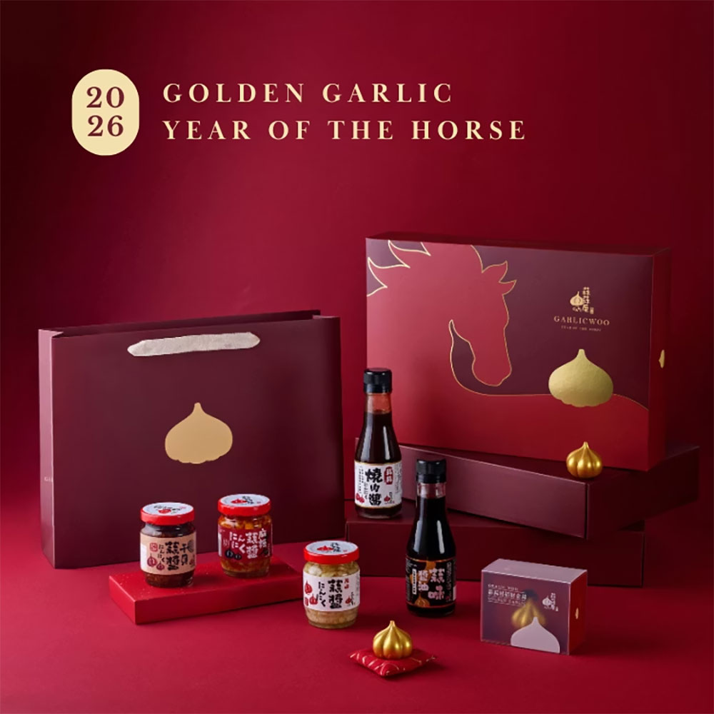 - 內 容 物:招財金蒜擺飾1入+蒜味醬油1瓶+蒜蒜燒肉醬1瓶+蒜醬口味任選2瓶(附提袋)
