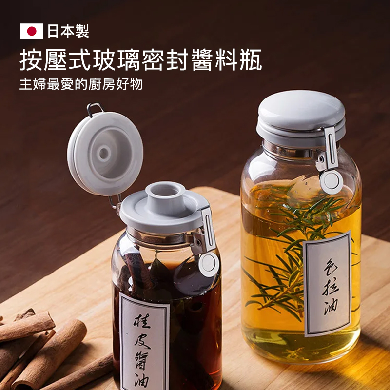 日本製 SEISHO 星硝 按壓式玻璃密封醬料瓶 500ml 油醋瓶