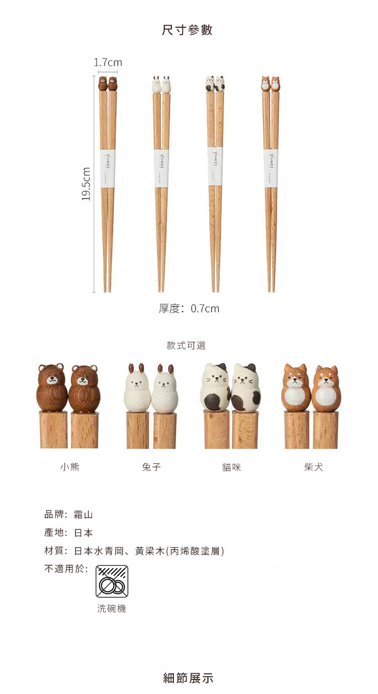 - 內 容 物:日本霜山 SHIMOYAMA 圓滾滾動物系列木筷 2雙組 (4款)