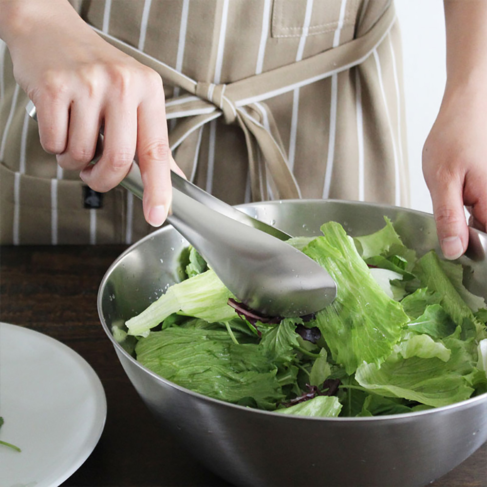 此款不鏽鋼夾,是靠著一體成形的鋼片彈力,不需要用力即輕鬆開闔。圓弧表面的末端設計有微微傾斜,夾取時能和盤子密合,方便夾取。俐落精美的造型,實用順手的設計,絕對是您廚房不可或缺的好幫手。