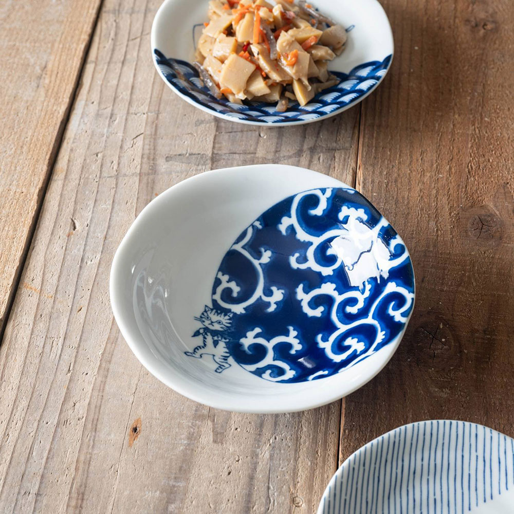 此系列淺盤以青色筆畫勾勒出可愛的貓咪,表情慵懶、模樣天真的小貓悠然生活,營造出可愛又富有韻味的畫面。每一隻貓咪有其特色與花紋,相當傳神,使人忍不住會心一笑。每款設計都以親切可愛的貓咪圖案為主題,非常具有收藏價值,讓人情不自禁想要一一入手。