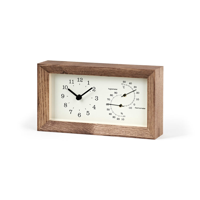 日本 Lemnos FRAME 木質方形溫濕度計 桌鐘 (深棕)