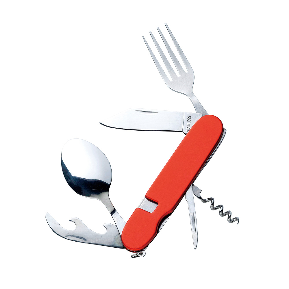 - 功 能:湯匙、叉子、刀、開瓶器、開酒器、開罐器、切割、榨汁器