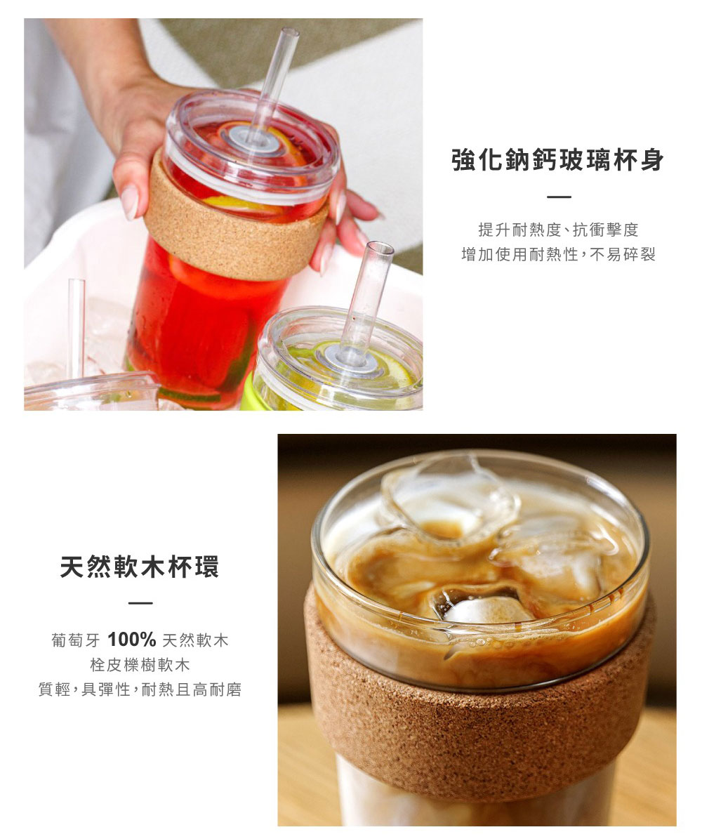 杯|強化鈉鈣玻璃(Fullytemperedsodalime)蓋|改質PCT (Tritan)、矽膠(Silicone)杯環|軟木(Cork)