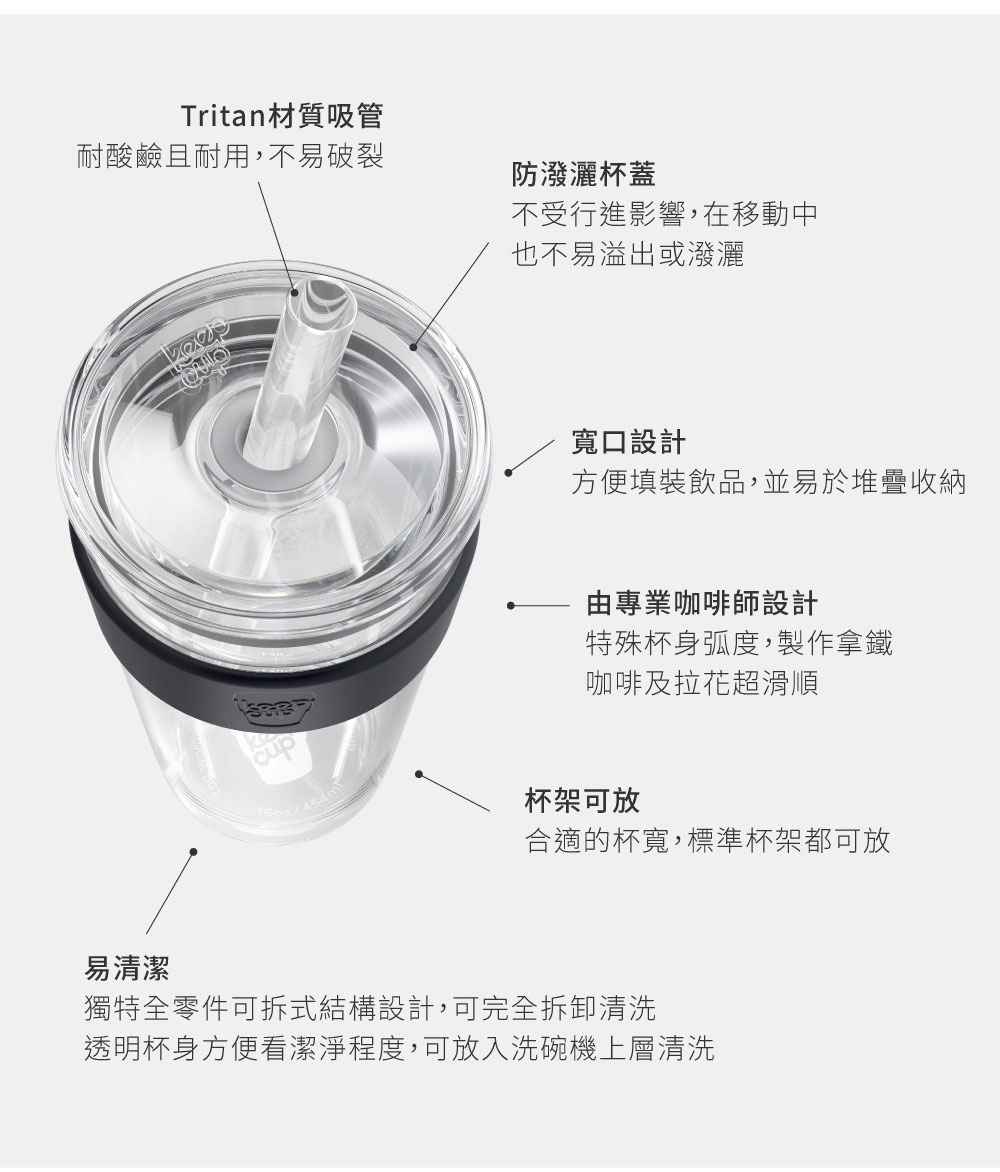 - 耐 熱:杯、蓋&吸管 100°C (建議適用於45℃以下的飲品,以避免燙手。)