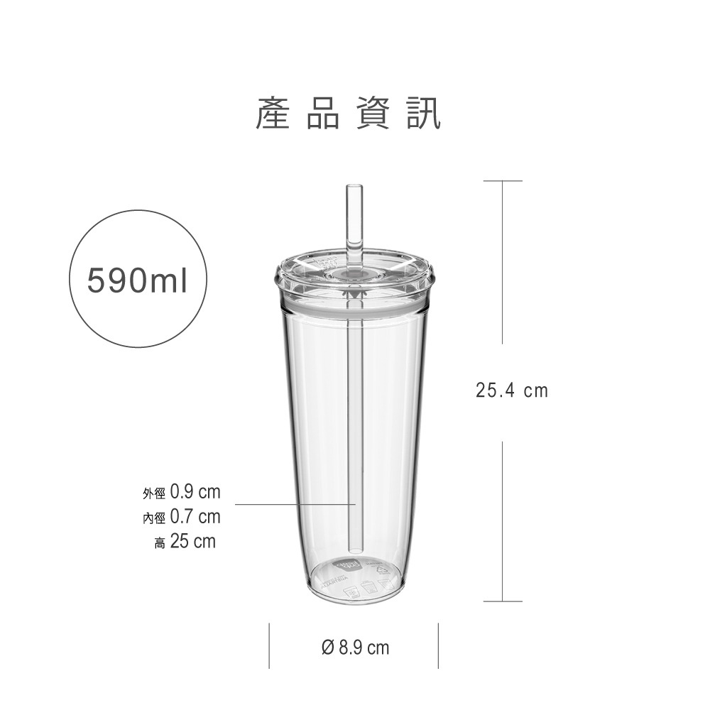 - 尺 寸:杯+吸管|高 25.4 cm杯身|總直徑 8.9cm、底直徑 5.9cm;18.3 cm(不含蓋)、19.3 cm(含蓋)