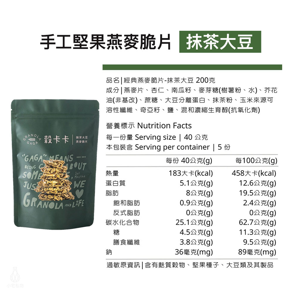 - 品 名:穀卡卡 燕麥脆片 (抹茶大豆) 200g