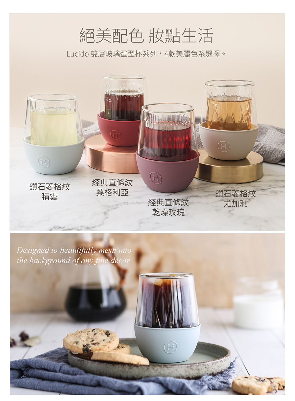 - 品 名:美國 HYDY LUCIDO 雙層玻璃 蛋型杯 菱格紋杯 (積雲) 240ml