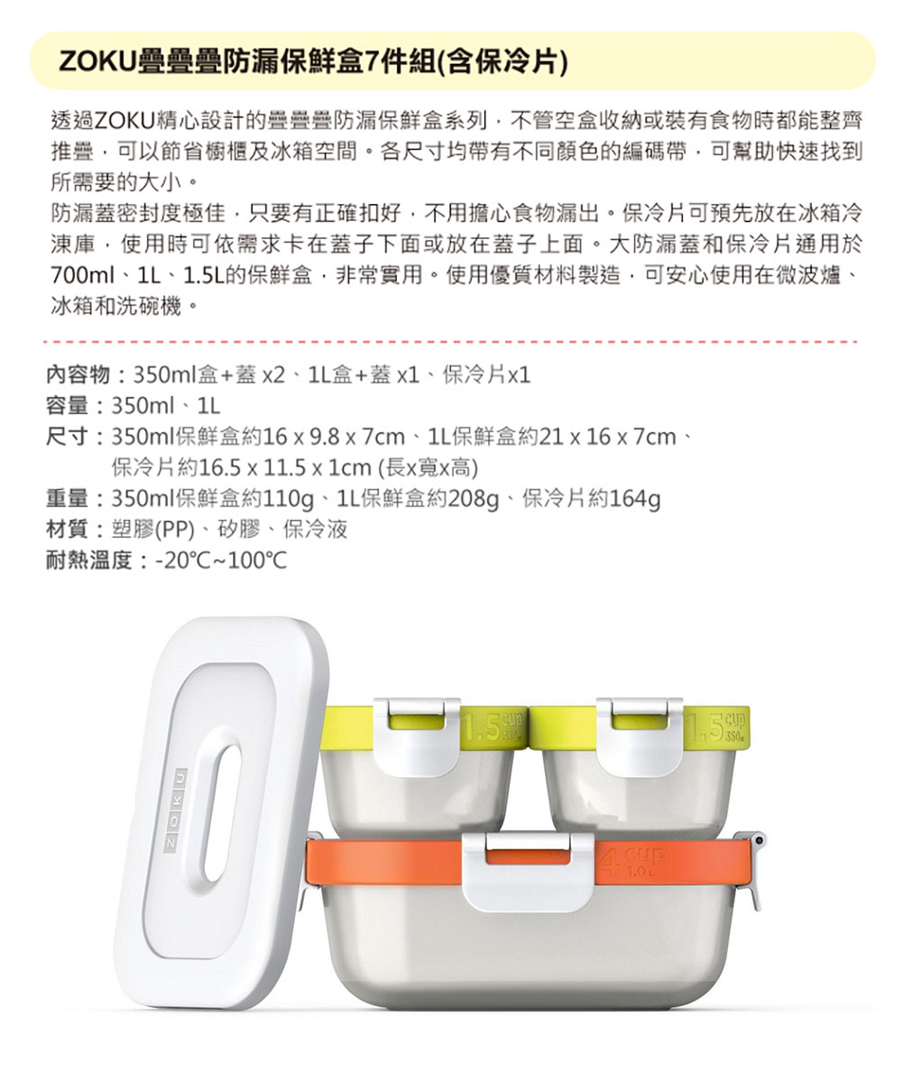 - 品 名:美國 ZOKU 疊疊疊防漏保鮮盒 7件組 (含保冷片)