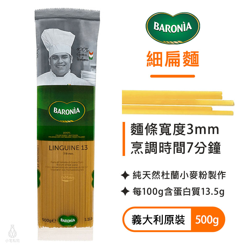 - 品 名:BARONIA 巴羅尼亞 細扁麵#13(500g)