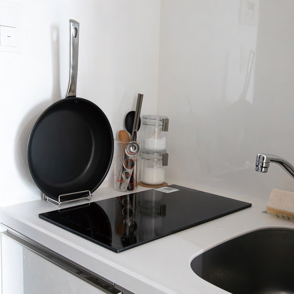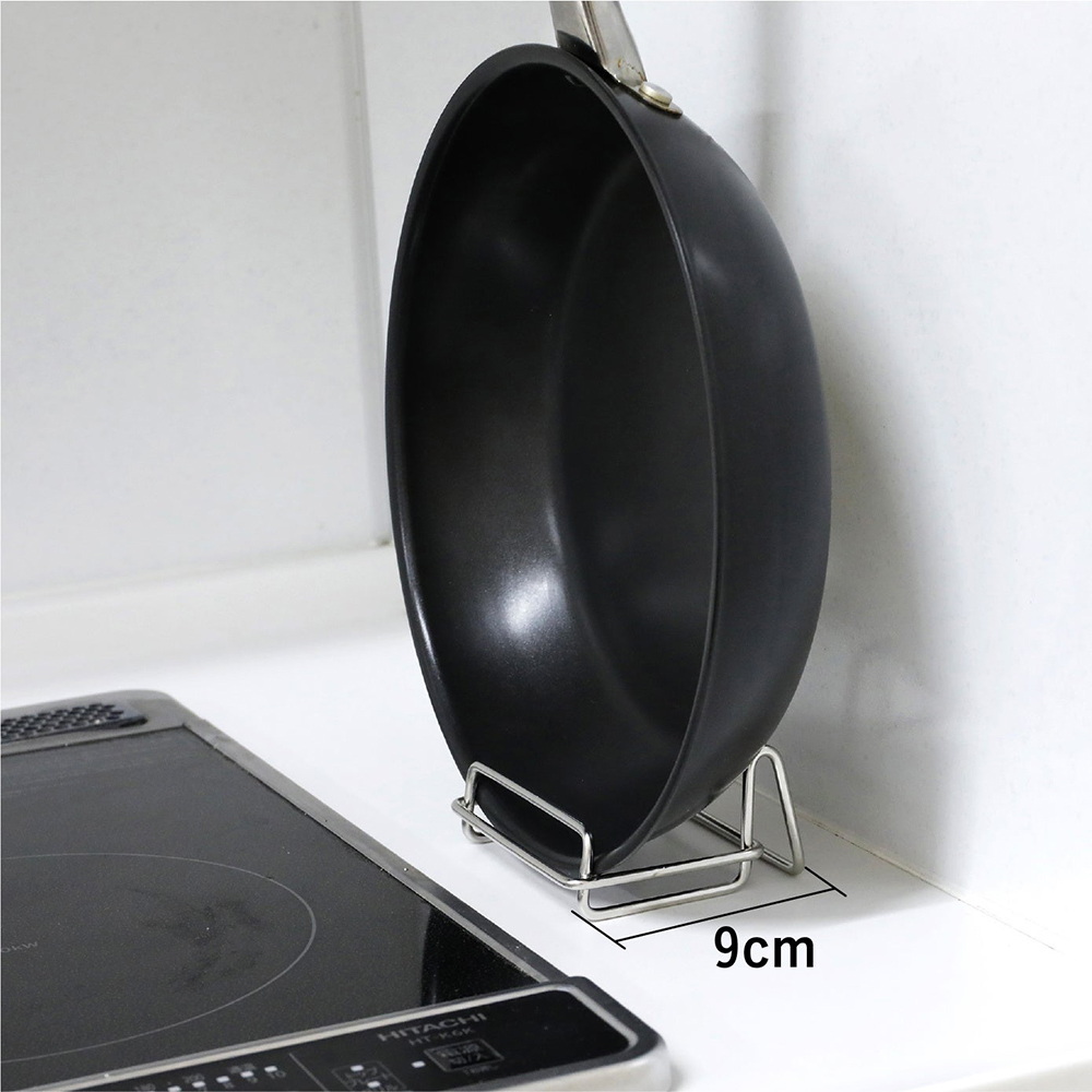 此款煎鍋立架,輕巧造型尺寸適合擺放在瓦斯爐或IH爐旁狹窄空間,不僅適合將煎鍋立放,也適合橫放,依據空間大小您可以自行調整擺放方式。可隨手取得使用,亦能迅速收納,讓日常料理更加便利。