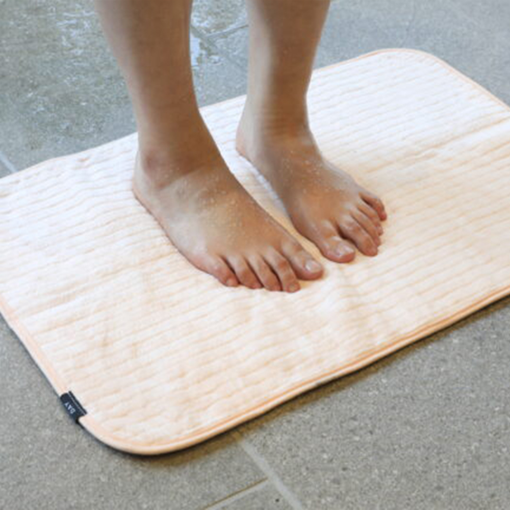 這是一款像棉花糖一樣柔軟且吸水力強的浴室腳踏墊,洗完澡後腳上的水滴只要輕踩一下就能迅速吸收。